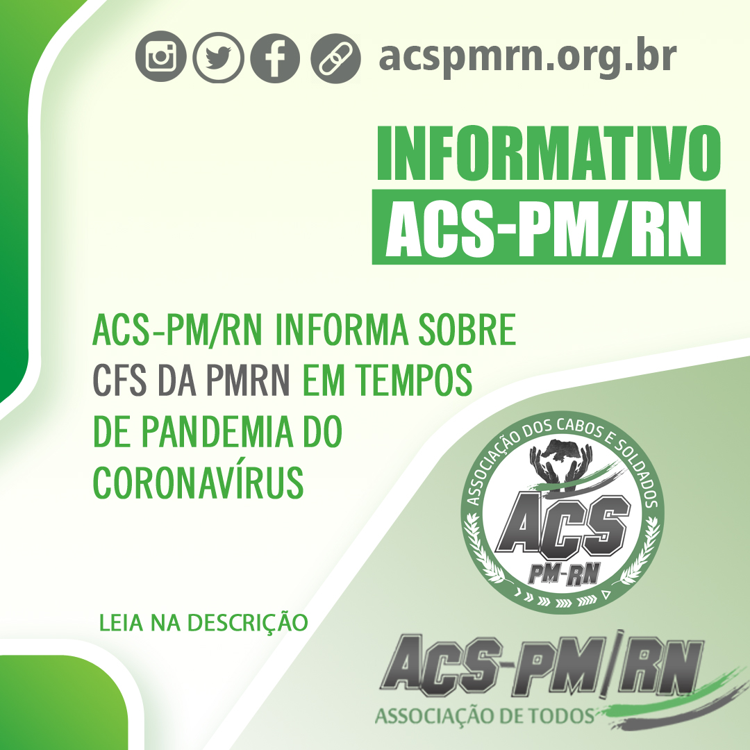 A Associação de Cabos e Soldados da Polícia Militar do RN (ACS-PM/RN) informa que, desde o anúncio da suspensão dos cursos de formação e aperfeiçoamento no âmbito da Polícia Militar em razão do coronavírus, tem tratado com o comando da instituição sobre soluções para que os policiais militares não sejam prejudicados em seu direito de promoção.