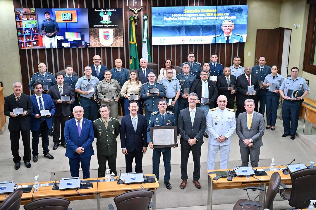 O Presidente da ACSPM/RN, Sd PM Carlos Cortez, teve a honra de participar da sessão solene em homenagem à Polícia Militar do Rio Grande do Norte, realizada na tarde desta quinta-feira (6) na Assembleia Legislativa. A sessão foi proposta pelo deputado Coronel Azevedo (PL) em comemoração ao aniversário da corporação, que completou 189 anos em 2023. Durante a cerimônia, foram entregues placas de reconhecimento a autoridades e policiais que se destacaram nos serviços prestados à corporação, Carlos |Cortez foi um dos homenageados.