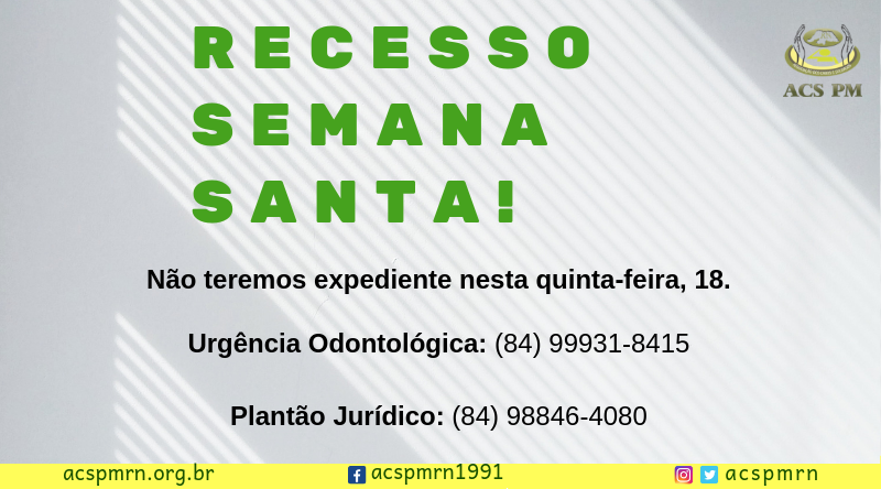 Informamos que não teremos expediente na ACS-PM/RN na próxima quinta-feira, 18.